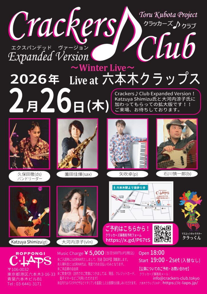 【ライブ情報】2026年2月26日(木) Crackers♪Club Expanded Version Live at 六本木クラップス